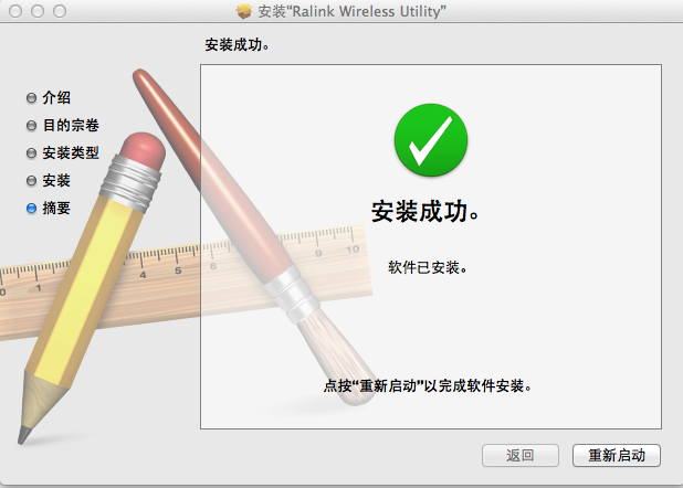重新啟動后,在蘋果系統任務欄“Ralink”圖標已經正確識別小米隨身WIFI。注意:如果這個設定工具無法打開,請安裝驅動包下:DWA-125_A2_for_MAC_v2.3.8.0進行設置。