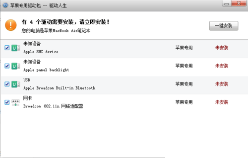 無論你的是Macbook Air還是Macbook Pro,或者是iMac一體機(jī)系列,只要是用蘋果電腦來裝Windows7等Windows系列系統(tǒng),那下載驅(qū)動人生的蘋果驅(qū)動包就能一鍵解決所有驅(qū)動問題。