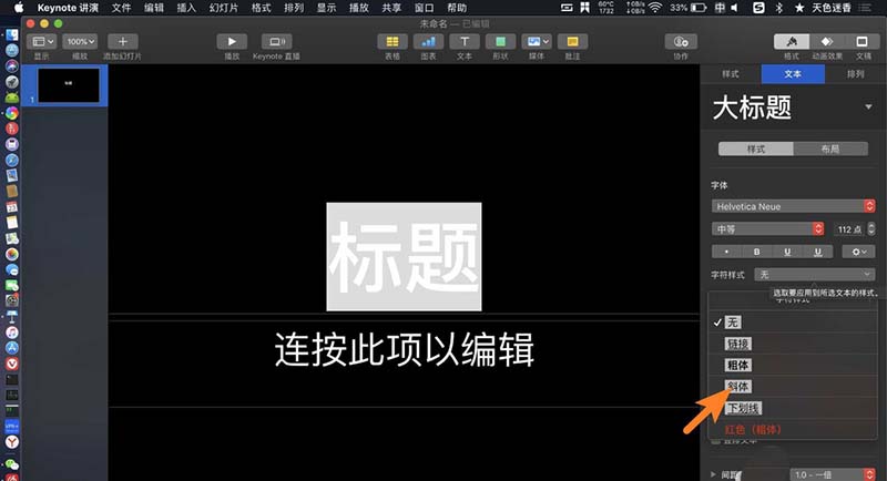 keynote文稿想要給字體設(shè)置樣式,該怎么設(shè)置傾斜字體呢?下面我們就來(lái)看看詳細(xì)的教程。
