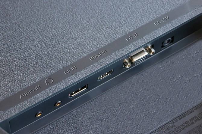 接口位于機身后部,并采用隱藏式設計,線纜也可以通過支架上的卡子進行收納,讓桌面不再因為線纜而凌亂。接口包括音頻輸入/耳機,1個標準DP,1個HDMI,還提供了一個比較傳統的VGA接口,在連接的兼容性方面,能夠滿足大多數的需求。