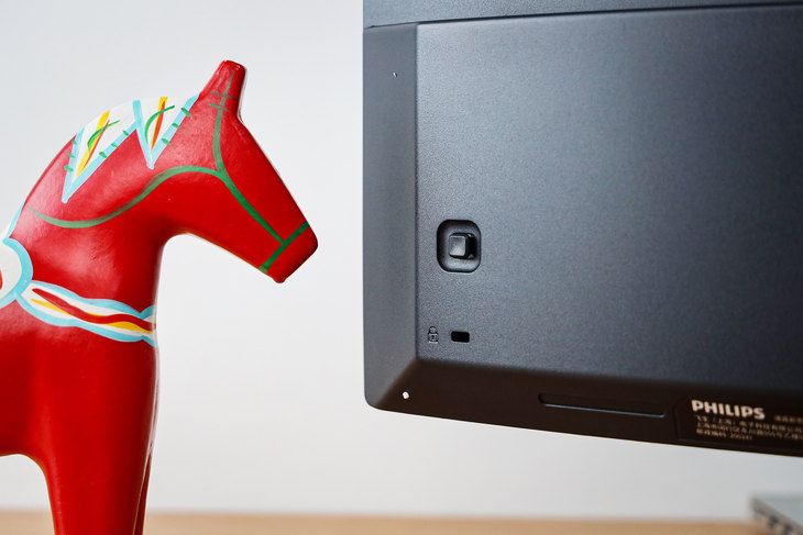 主控制鍵的下方為顯示器防盜鎖孔,商用場合往往會用派上用場。
