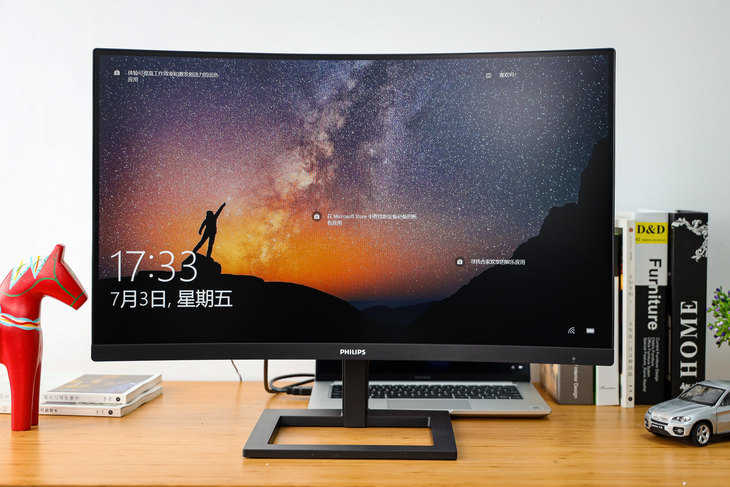 飛利浦271E2C采用了百搭的黑色外觀設計。肉眼可見的超高曲率屏幕,讓這款27英寸顯示器看著就非常的與眾不同。
