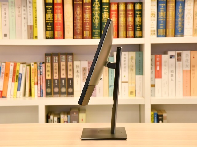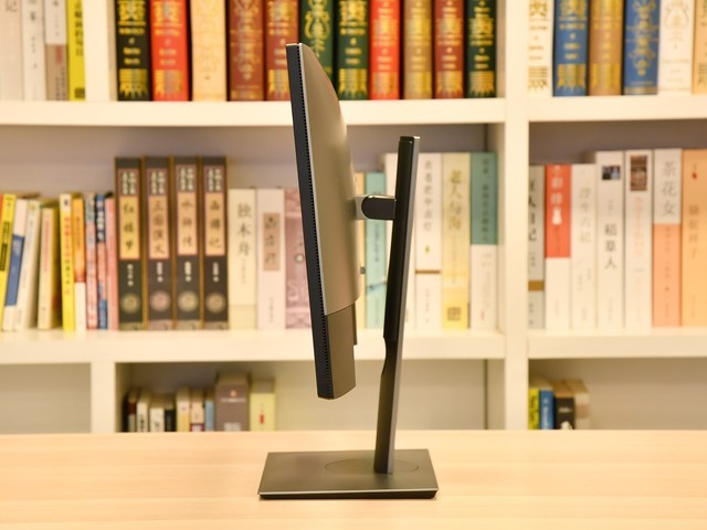 戴爾簡約的底座設計,極大的節省了桌面空間,而支架的轉軸也經過了精心改良。而作為一款商用顯示器,極大的可調范圍給了用戶極大的自由度,支持0-130mm高低升降、-5~21°俯仰調節、45°的水平旋轉以及-90°~90°的垂直旋轉。