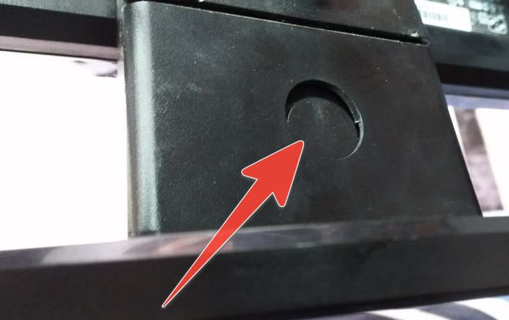 1、要完全拆開這款華碩顯示器底座的時候,先端起顯示器,把底盤上的那個圓形插銷按下去。