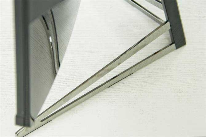 底座下方的支撐腳采用了拋光金屬材質,每側下方有兩個腳墊,雖然腳墊很細,但是防滑效果挺好