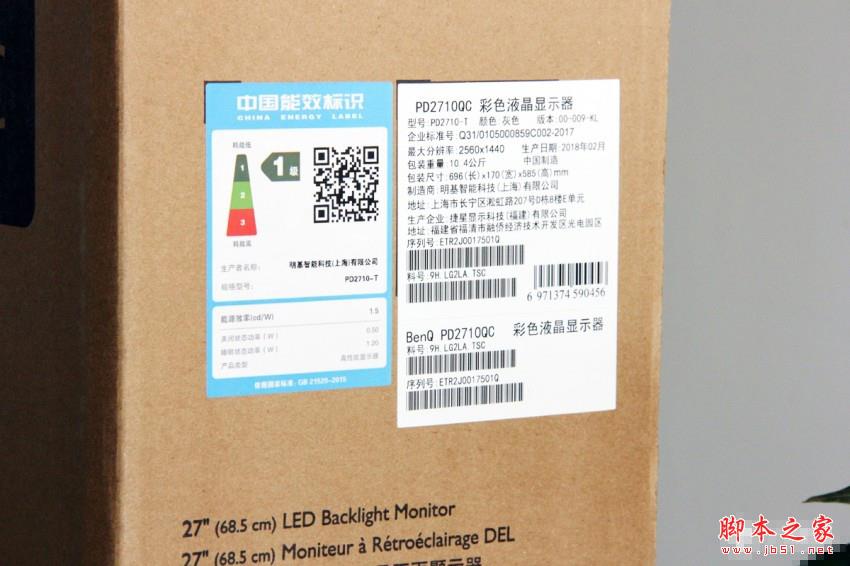 明基PD2710QC顯示器包裝簡單環(huán)保,包裝上有顯示器的基本信息。
