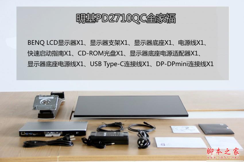 打開之后顯示器及附件用充滿包裝盒的塑料保護(hù),明基PD2710QC顯示器各個(gè)附件是分開的,除了顯示器以外,還有顯示器支架、底座、顯示器電源線及底座的電源線、Type-C連接線、DP-mini連接線、快速啟動指南、保修卡以及光盤,可以說是非常豐富。