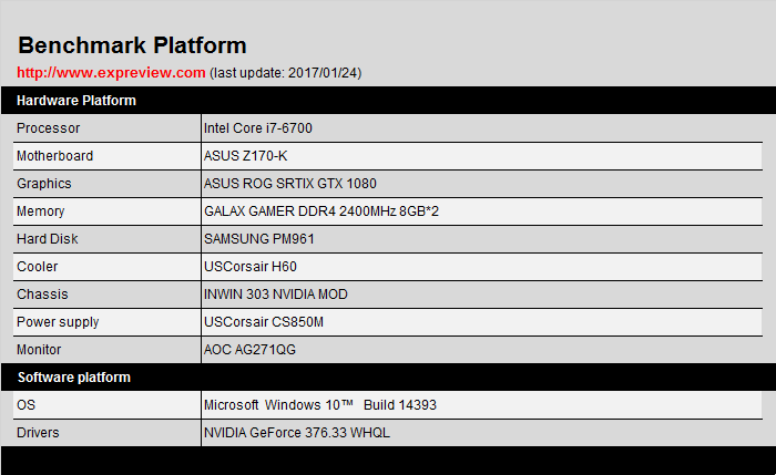 為了真實地體驗G-SYNC的魅力,我們特意選用了一套高性能組裝機,雖然CPU并不是最新的i7-7700K,但是這并不影響,畢竟游戲主要靠顯卡嘛,華碩ROG SRTIX GTX 1080暢玩《守望先鋒》是毫無疑問的,而且測試的AOC AG271QG G-SYNC顯示器刷新率高達165Hz,能與之匹配的顯卡非GTX 1080和Titan X莫屬了。