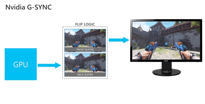 歸根到底,同步技術都是為了想讓GPU輸出畫面與顯示器刷新時間保持一致,提供優秀的游戲視覺體驗。下面我們以G-SYNC為例,講解一種全新的同步技術。NVIDIA在2013年10月公布了能夠大幅度提升游戲視覺體驗的終極武器——G-SYNC,它改變了過往以軟件方式匹配硬件的刷新同步,而是讓顯示器主動適應GPU輸出幀數多少來動態調整刷新率。