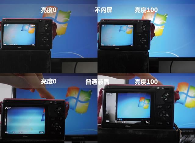 將手機的相機功能打開并切換到攝像模式,對準顯示器。同時將顯示器亮度慢慢由100%調到50%,再到0。當顯示器處于低亮度設置時,屏幕閃爍尤為明顯。