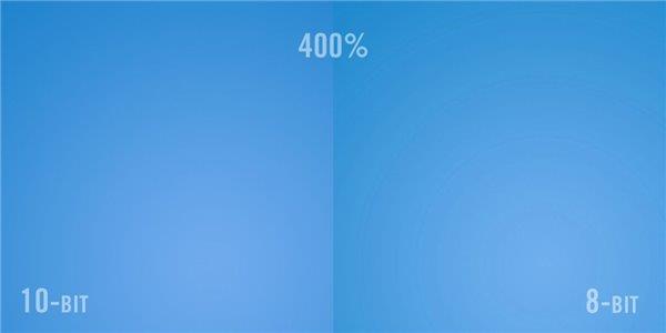 10bit有什么用?如果要用最直觀的說(shuō)法去描述,它能夠讓色彩呈現(xiàn)出更加細(xì)膩的漸變變化,因?yàn)槊恳粋€(gè)顏色通道中的色彩級(jí)數(shù)由8bit的256級(jí)(目前我們絕大多數(shù)的顯示設(shè)備都采用的是8bit,甚至還有6bit)一下子暴漲到了1024級(jí)。這樣,顏色的呈現(xiàn)自然就更加細(xì)膩了。