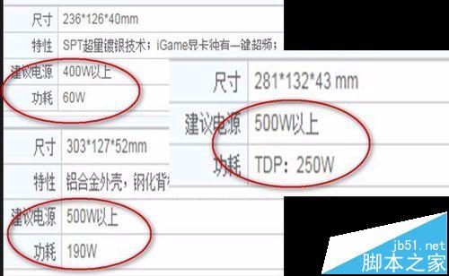 1、這里隨機挑選了3款顯卡;我們可以看看它們各自的功耗