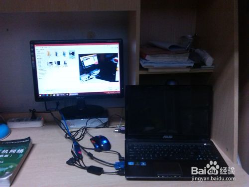 1、將擴展顯示屏的電源線接好,并將數據線連到電腦。如下圖
