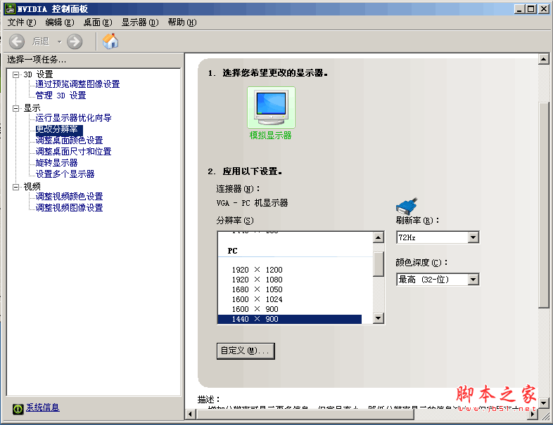 點擊左面的更改分辨率 > 自定義(上圖的1440*900也是我這樣添加的,這里只是再來一次)