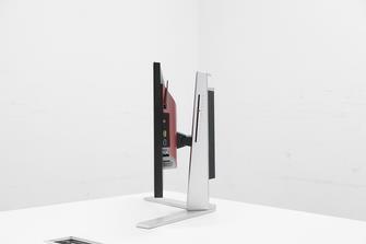 作為一款電競顯示器,AOC AG251FG在旋轉升降等設計上做得十分用心,共包含四種角度調節,分別為屏幕升降、仰俯角調節、支架底軸旋轉、橫豎屏旋轉,用戶可以根據日常使用習慣調節到最舒適的屏幕視角。