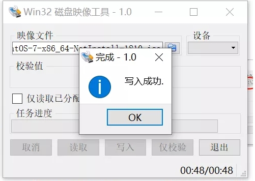 寫入數(shù)據(jù)時電腦請不要休眠、不要拔出U盤等,避免寫入數(shù)據(jù)出現(xiàn)各類問題。請耐心等待,直至彈出“寫入成功”,點擊“OK”即可。