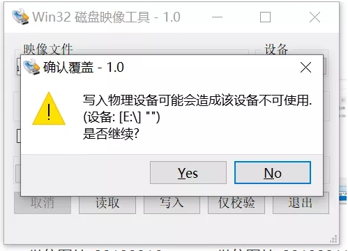 接著會彈出“確認(rèn)覆蓋”的警告,如準(zhǔn)備妥當(dāng),點擊“YES”開始寫入數(shù)據(jù)。寫入數(shù)據(jù)過程中,會有進(jìn)度條(0%~100%),等待時長根據(jù)ISO鏡像文件大小、U盤的讀寫速度等因素影響會有差別