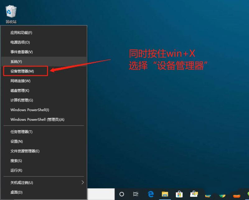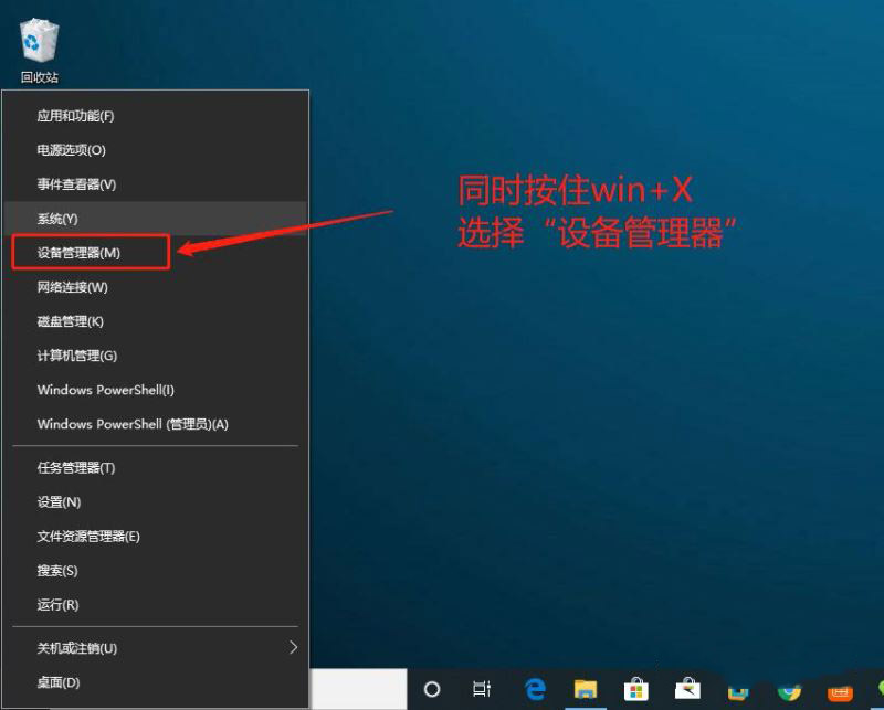 1、同時(shí)按住“win+X”,在彈出的頁面中選擇“設(shè)備管理器”