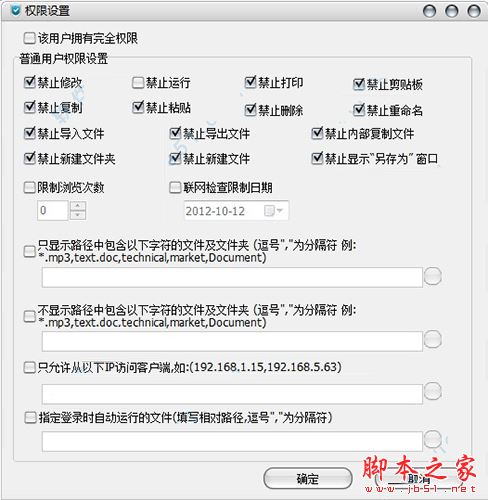 寫入權(quán)限:用戶只能打開文件并且保存文件,但仍不能復(fù)制或刪除。自定義權(quán)限可以自由組合這些權(quán)限限制。