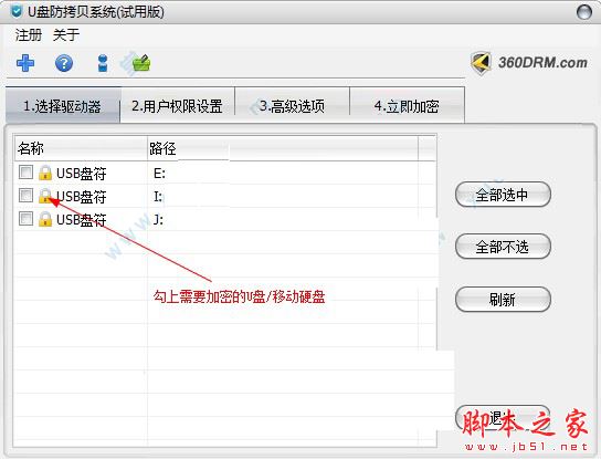 1、運(yùn)行加密軟件,如果列表里沒有您的U盤,請(qǐng)先把U盤插入電腦,再點(diǎn)擊"刷新"按鈕。