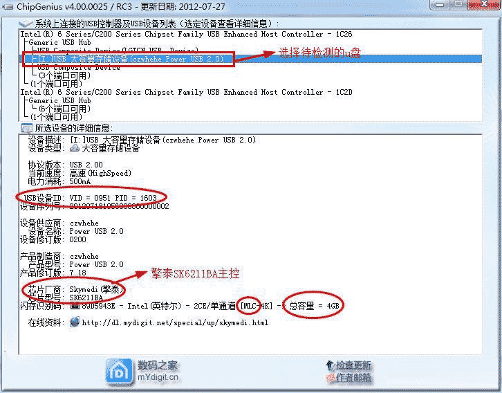 量產要根據u盤的主控找量產工具,這里所說的主控就是u盤的芯片廠商和芯片型號。檢測主控,最最準確的方法當然是拆開查看了