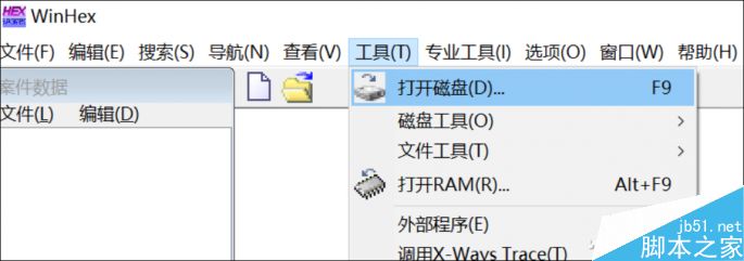 以管理員身份運行WINHEX程序,選擇工具---打開磁盤