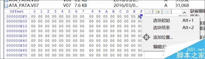 跳轉到7扇區后,按鍵盤的向上鍵找到0000 0DF0一欄的55AA,在最后面的A那里點右鍵,選擇選塊結束