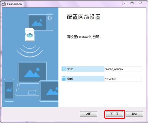 ※FlashAir驅動器的配置將消耗幾分鐘時間。