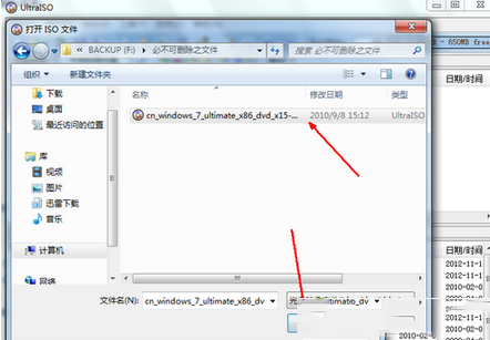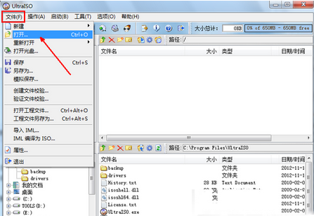 點擊“文件”菜單下的“打開”按鈕,打開一個你要裝進U盤的操作系統鏡像。