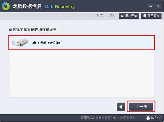 第三步,選擇要恢復數據的U盤,然后點擊下一步。如果軟件沒有檢測到U盤,大家則需要重新插好U盤,直到軟件能檢測到U盤。