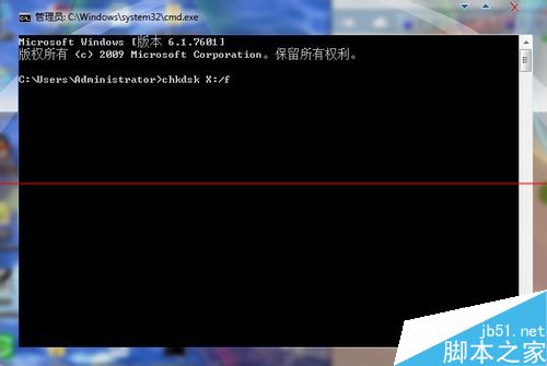 2、在出現(xiàn)的命令提示符窗口內(nèi)輸入“chkdsk X: /f”,然后點(diǎn)enter鍵,。
