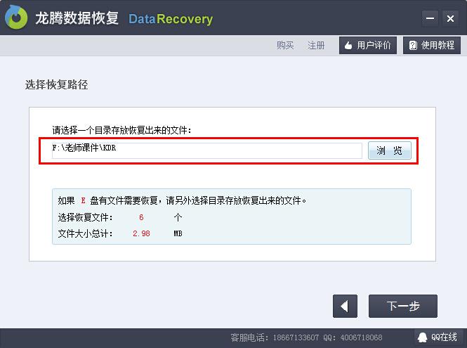 第五步:選擇一個盤存放需要恢復出來的文件,然后單擊下一步。等待片刻即可恢復完成。