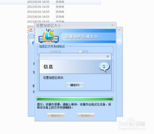 6、稍等之后,就提示您分區設置成功啦,這個時候系統會要求你再次輸入密碼,輸入密碼后分區就完成啦,這個時候,打開“我的電腦”,可以看到原本只有一個的優盤便成了2個,那么后面增加的s盤,就是我的安全分區部分啦!