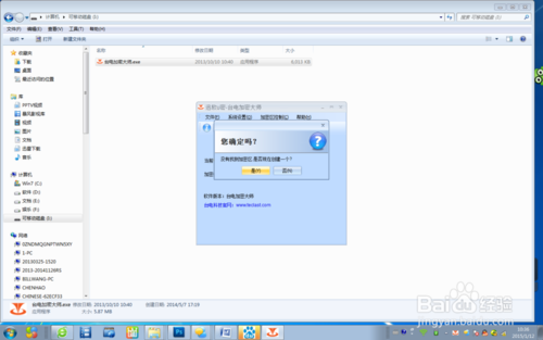 3、點擊后會彈出一個提示窗口,提示還沒有建立加密區域,是否確定建立加密區域,選擇“是”