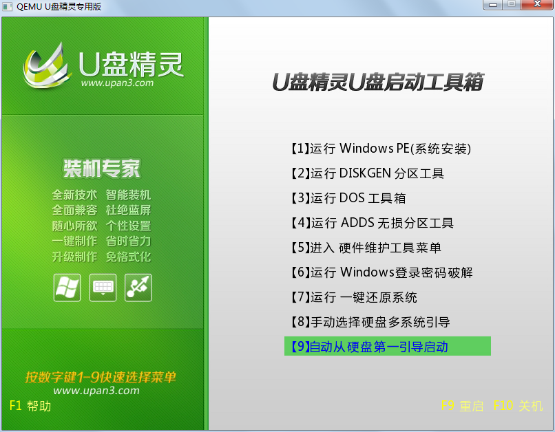 然后就會重新啟動系統,并從U盤啟動。出現如下圖頁面: