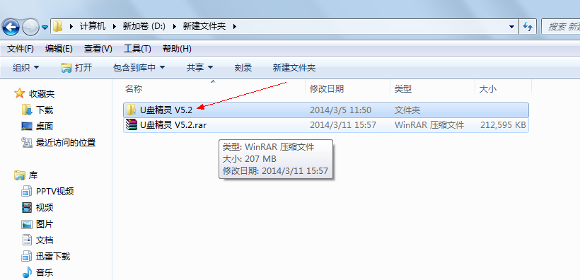 解壓以后得到“U盤精靈V5.2”文件夾,打開文件夾: