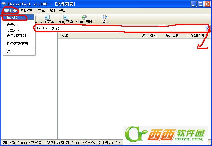 1.插入U(xiǎn)盤,打開fbinstool,選中U盤而非fba文件后,執(zhí)行菜單“啟動(dòng)設(shè)置→格式化”。(圖2)