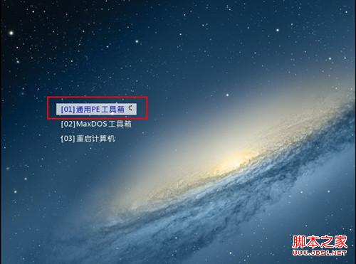 7.關閉所有應用程序,重新啟動電腦,在開機選擇畫面時,會出現通用PE工具箱的選項,選中它即可進入PE界面,如圖: