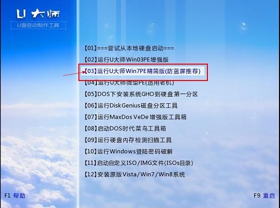 2.利用啟動(dòng)U盤(pán)啟動(dòng)電腦,進(jìn)入WINPE菜單選擇界面,選擇【3】,如圖:
