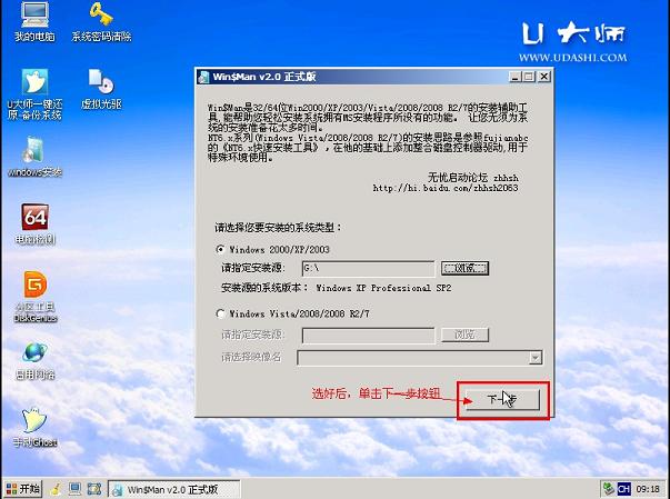 3.進(jìn)入WINPE界面后,在桌面上找到“windows通用安裝器”,雙擊運(yùn)行它,在彈出的界面上單擊“瀏覽”,如圖: