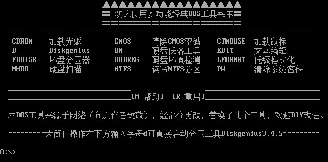 2、Diskgenius 3.4.5最新版,啟動后也是一個小的DOS工具集合,