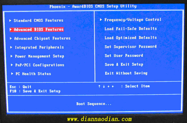 1、Phoenix – AwardBIOS(2010年之后的電腦):下圖1:開機按Del鍵進入該BIOS設置界面,選擇高級BIOS設置:Advanced BIOS Features