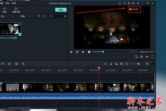 1、打開想要去水印的視頻文件,并將打開的視頻拖動到下方的時間軸中,之后在右上角的播放窗口進行播放,尋找水印的具體位置,像小編所使用的視頻就是從QQ音樂中進行下載的,在QQ音樂中上下載的視頻都自帶了水印標志,如下圖所示: