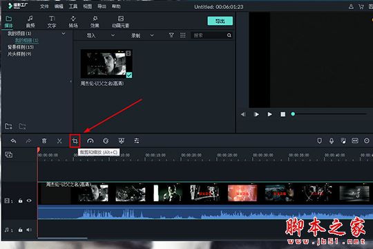 2、之后就可以開始進行水印的去除工作了,直接在時間軸的上方功能欄中選擇“裁剪和縮放”選項,你也可以使用“Alt+C”的快捷鍵打開此功能,如下圖所示: