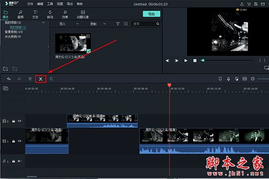 2、接著將成功導(dǎo)入的視頻拖動(dòng)到下方的時(shí)間軸中,拖動(dòng)時(shí)間紅線找到想要剪切分割的具體時(shí)間點(diǎn),接著點(diǎn)擊上方紅框標(biāo)注內(nèi)的“分割”功能選項(xiàng)進(jìn)行剪輯,這樣一整段視頻將會(huì)變成兩段或多段不同的視頻片段,用戶可以拖動(dòng)這些片段到其他不同的圖層,讓你更加方便的對(duì)某個(gè)片段進(jìn)行編輯,如下圖所示: