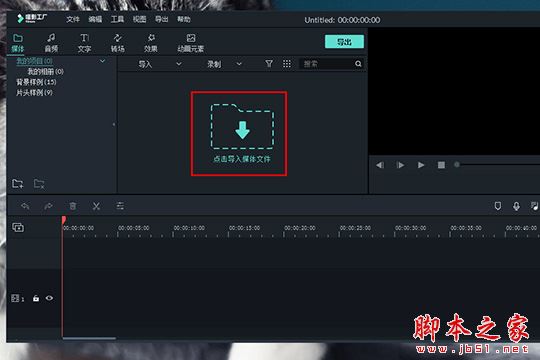 1、如果用戶想要對(duì)視頻進(jìn)行剪輯,首先肯定是要先導(dǎo)入視頻媒體文件才行,在剛進(jìn)入軟件時(shí)用戶需要先登錄自己的賬號(hào)才能夠正常使用,之后就可以點(diǎn)擊紅框中的“點(diǎn)擊導(dǎo)入媒體文件”選項(xiàng)導(dǎo)入需要剪輯的視頻了,如下圖所示:
