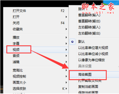 3、接著我們用快捷鍵“Ctrl+G”打開“高級截圖”功能,或者也可以用鼠標右鍵點擊視頻畫面,在彈出的窗口中打開“視頻”—“高級截圖”;