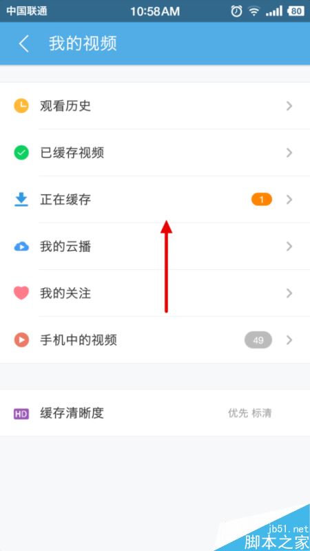 下載之后找到個人中心的【我的視頻】,點擊進入看到【正在緩存】,再點擊就可以看到我們剛剛看到的視頻在下載了。 過程非常簡單,下載速度也很快。
