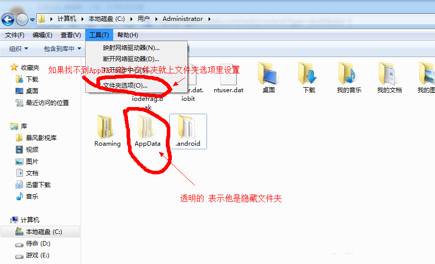找到困擾你很長(zhǎng)時(shí)間的文件夾c:/用戶/Administrator/AppData/Roaming/funshion 如果沒(méi)有設(shè)置隱藏文件夾可見(jiàn)的話是找不到的 具體設(shè)置方法如下