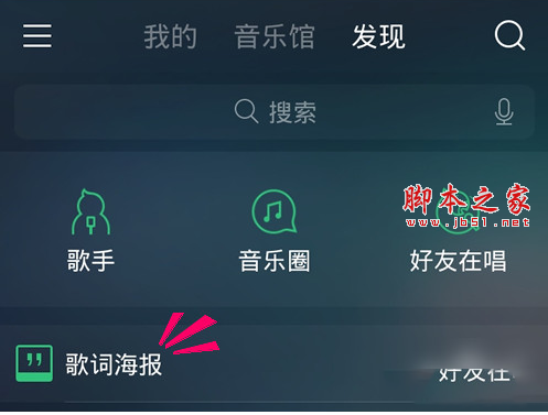 2、點擊切換到[發現],你在下面就能找到[歌曲海報]了,下面就要準備創建海報了。